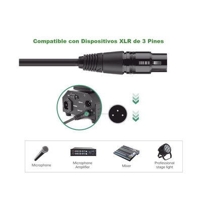 Conecta el extremo XLR hembra al micrófono o dispositivo compatible.